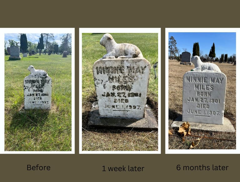 Professional gravestone cleaning using historic preservation standards in Bemidji.