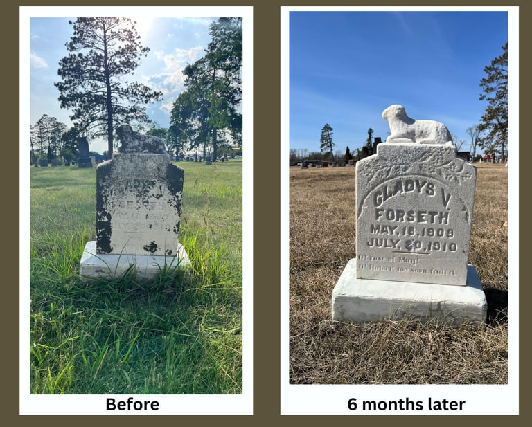 Gentle, respectful gravestone cleaning with historic preservation standards.