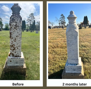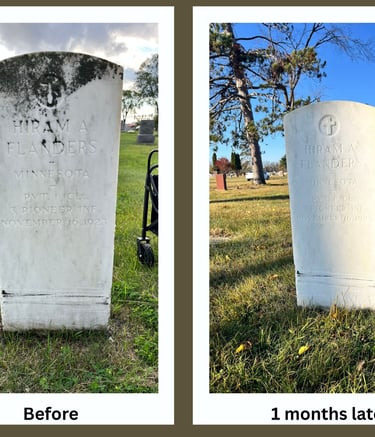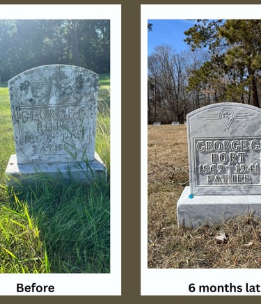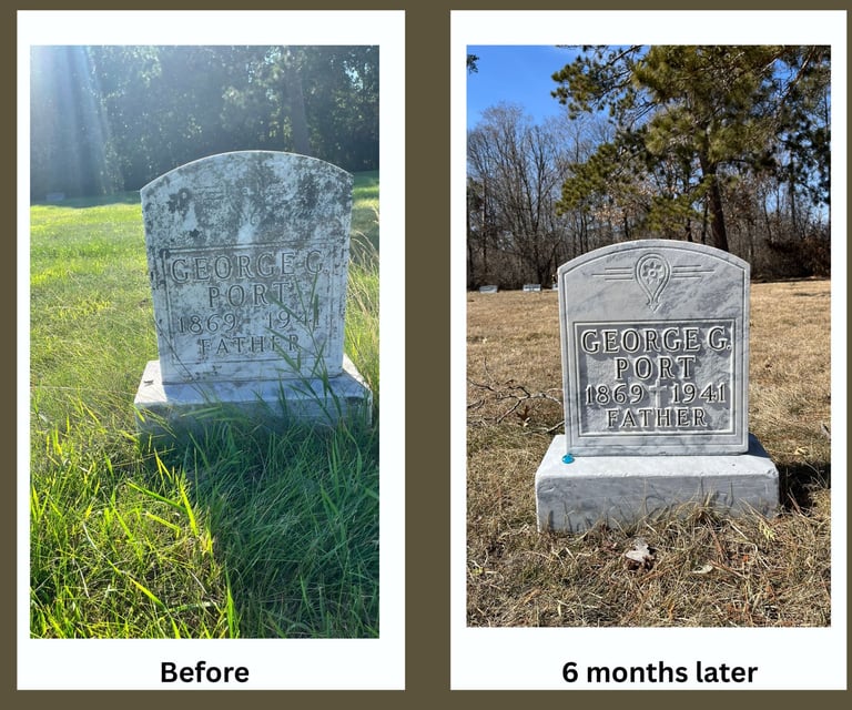 Our restoration work goes beyond cleaning — it’s about careful preservation. We use proven, non-invasive methods to stabilize, reset, and restore headstones that have weathered time and the elements. Whether repairing a tilting base, reattaching a fractured stone, or reviving legibility on historic markers, every restoration follows recognized conservation and preservation standards to maintain the monument’s integrity and honor its original craftsmanship.
