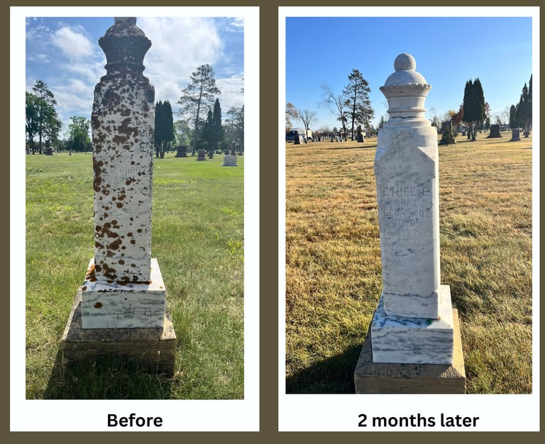 With extensive experience in gravestone cleaning and cemetery headstone preservation, we understand the unique care that different memorial materials require. From the durability of granite to the delicate textures of marble, limestone, and sandstone, each headstone demands the right balance of precision and protection. We also specialize in maintaining brass and bronze plaques, using methods that remove corrosion while preserving their natural patina. Our approach follows national historic preservation standards, ensuring every monument — modern or historic — is treated with respect and professional expertise.